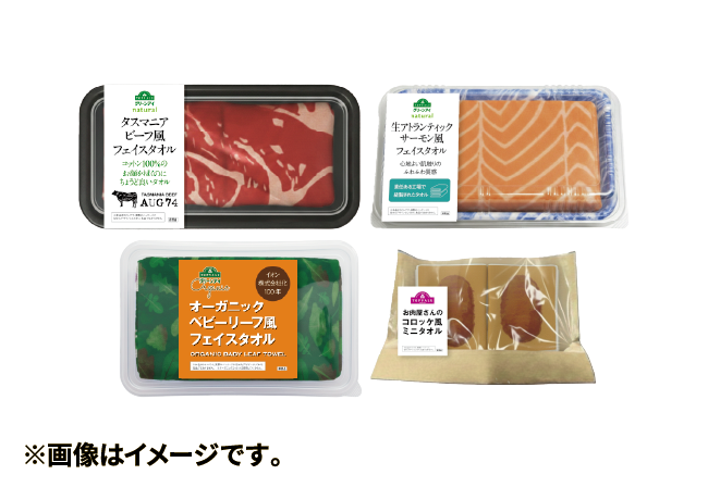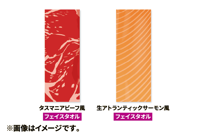 Present25 食べられそうで食べられない !?本物“風”タオルタスマニアビーフやサーモンが、まさかのタオルに !? 景品詳細はコチラ。