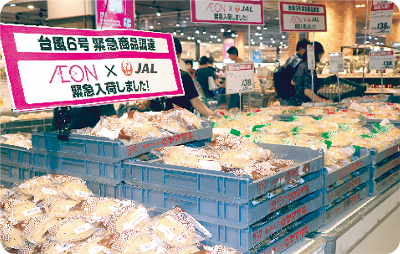 台風災害に備え、食品などの生活必需品を航空便にて緊急調達するなど、外部と連携しながらお客さまの暮らしを守る活動を実施します。