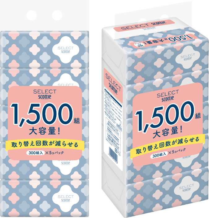 「スコッティセレクトソフトパックティッシュ300組×5個」