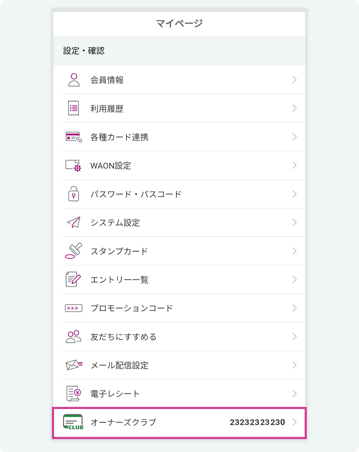 マイページよりオーナーズクラブをタップ
