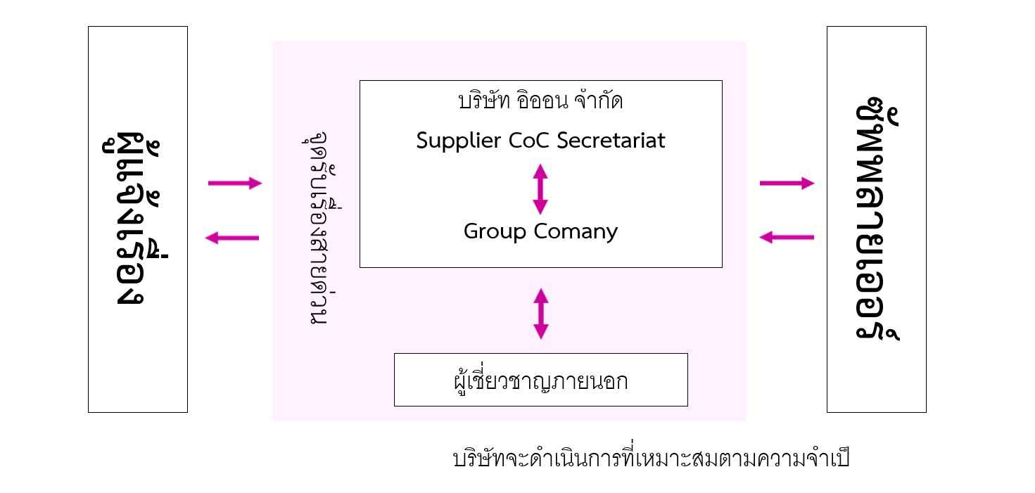 อิออนได้เปิดรับคำปรึกษาและการแจ้งเบาะแสจากคู่ค้าทางธุรกิจ รวมถึงพนักงานของคู่ค้า ผ่านช่องทาง “Business Partner Hotline” เพื่อร่วมกันสร้างห่วงโซ่อุปทานที่ปลอดภัยและโปร่งใส และเพื่อให้สามารถมอบสินค้าและบริการที่ดียิ่งขึ้นแก่ลูกค้าของเราได้